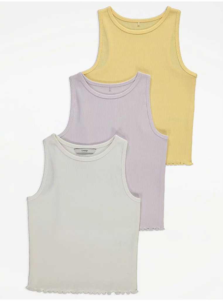 Lettuce Trim Ribbed Vests 3 Pack