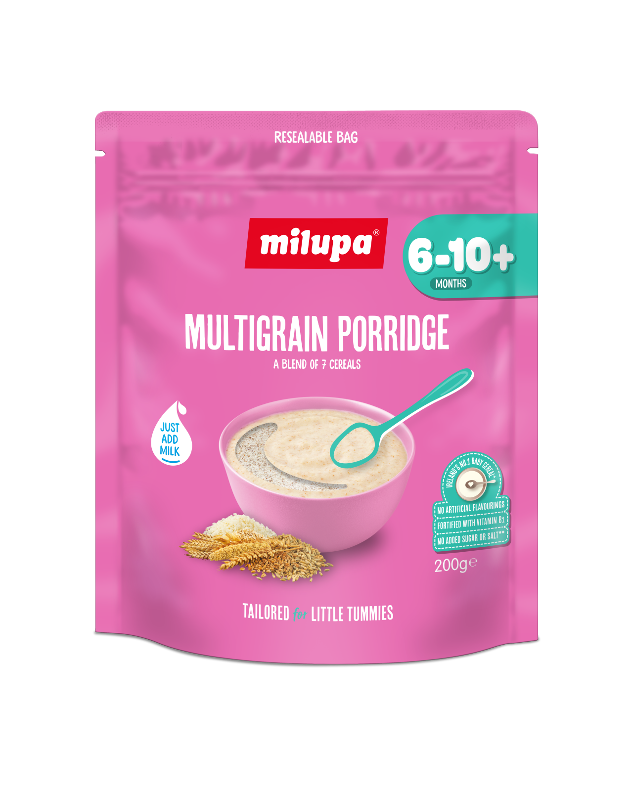 Многозърнеста каша е съставена от вкусна смес от 7 зърнени култури, включително пшеница, овес, ечемик и ръж. По което и време на деня да го опита, вашето мъниче със сигурност ще обожава вкусa му. Всички зърнени храни Милупа са без добавена захар или сол, както и без изкуствени оцветители, овкусители или консерванти.По време на отбиването на вашето бебе е важно да го запознаете с набор от вкусове и текстури. Текстурите в зърнените закуски Мilupa са пригодени за малки коремчета на всеки етап от пътуването на отбиването до една година.