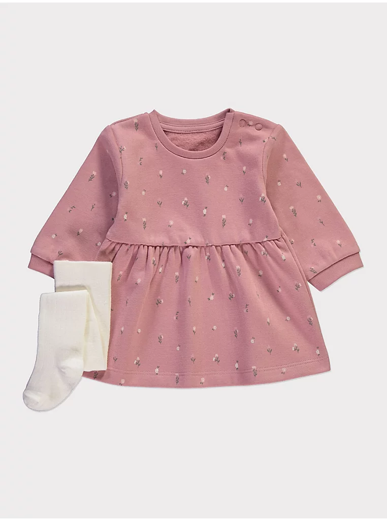 Pink Floral Sweatshirt Dress and Tights Outfit