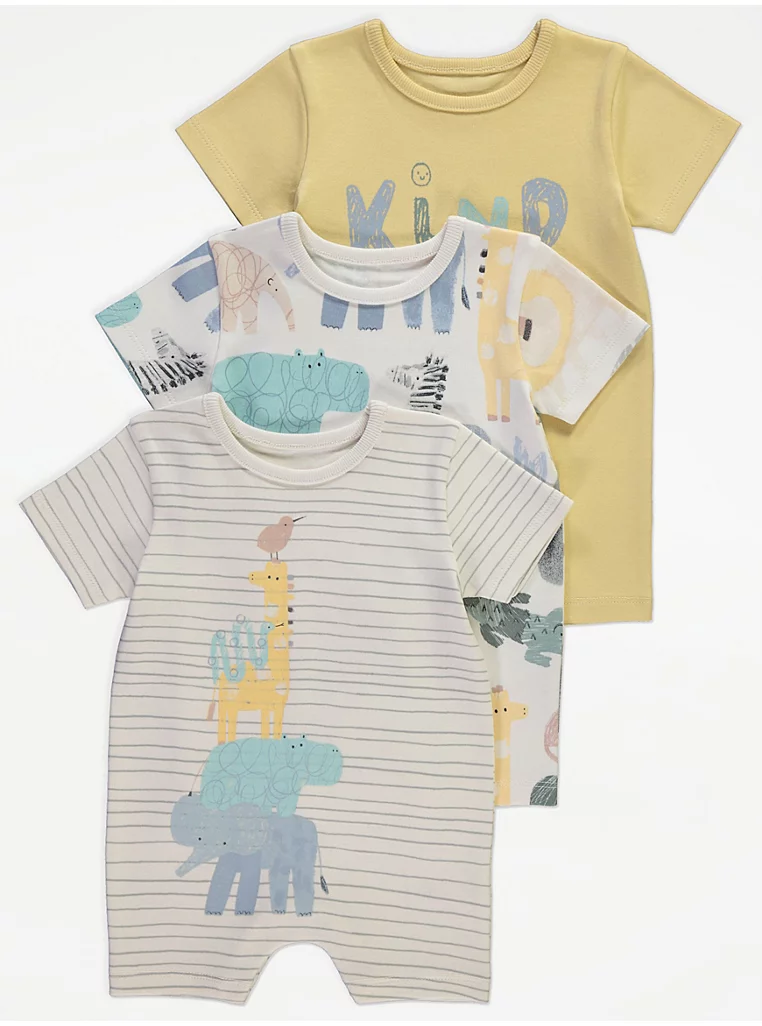Sketch Safari Animals Rompers 3 Pack
