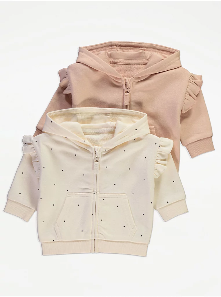 Spotty Frill Zip Up Hoodies 2 Pack