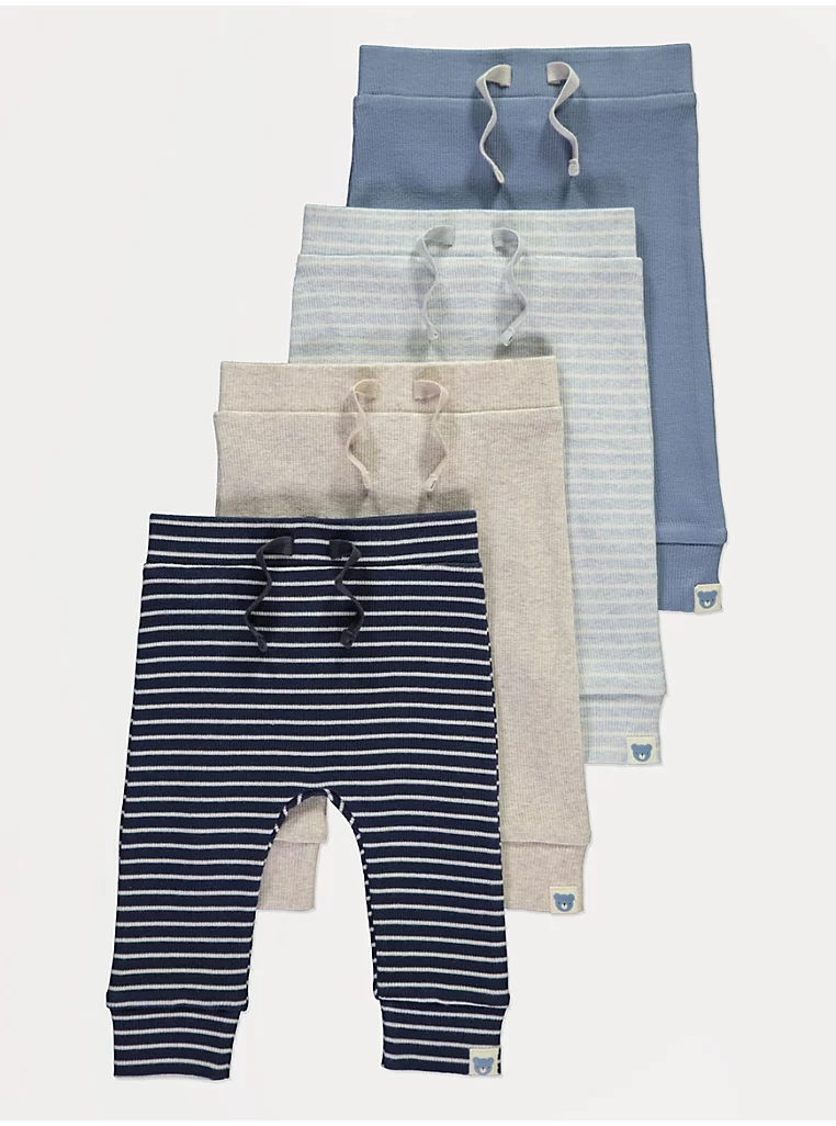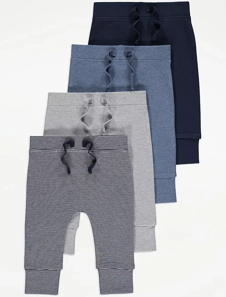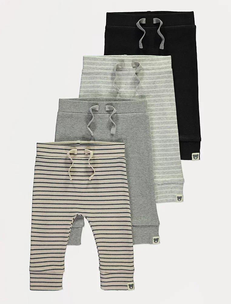 Striped Ribbed Cuffed Joggers 4 Pack